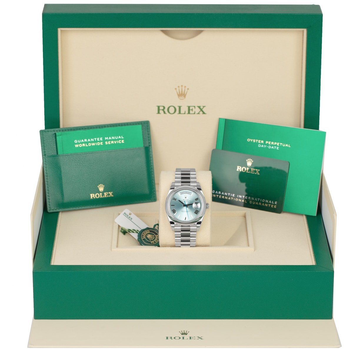 Rolex 228206 Day-Date Ice Blue Roman Dial 40mm Platinum Men’s Watch