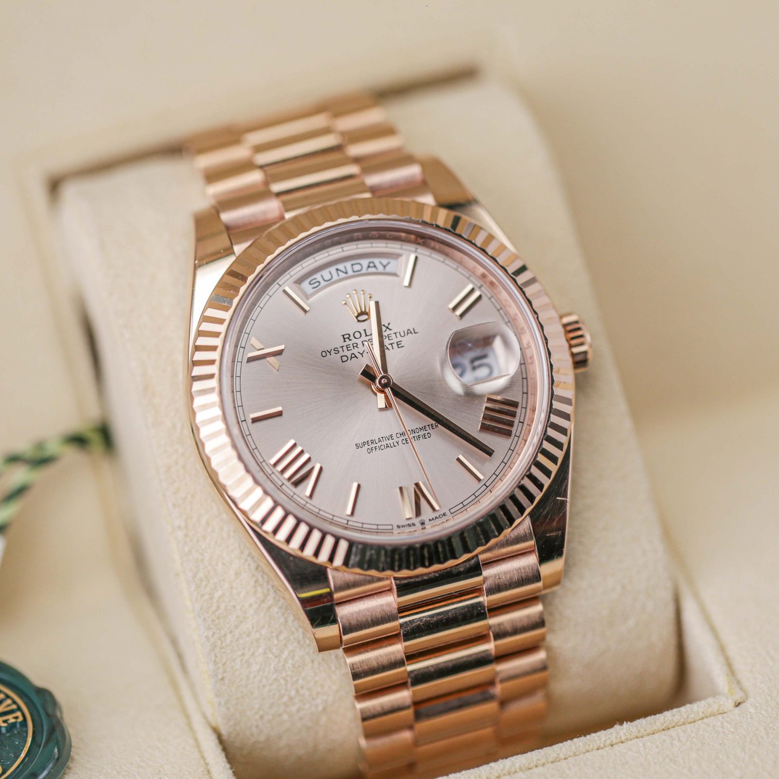 Rolex 228235-0001 Day-Date Sundust Roman 40mm Everose Gold Watch