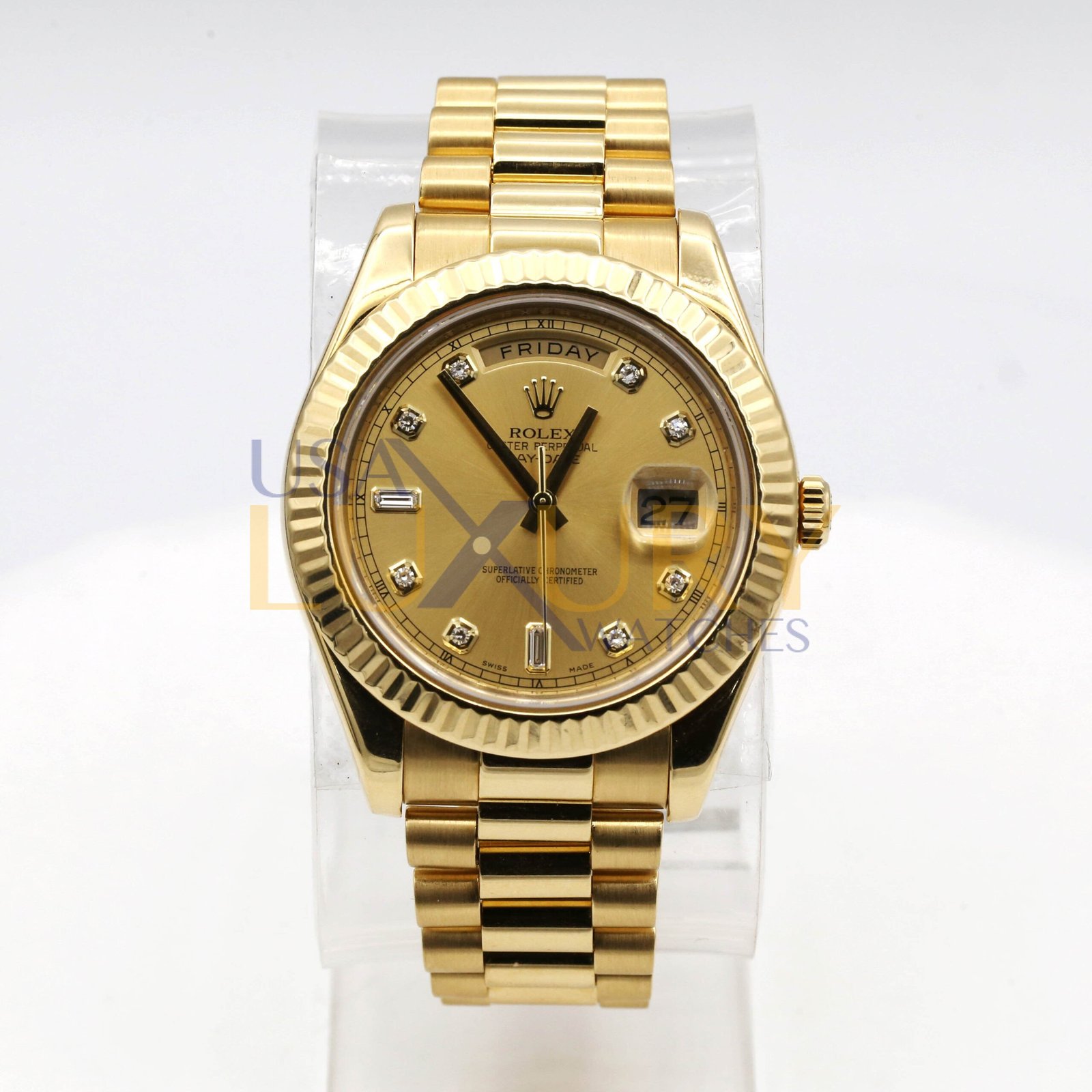 Rolex Day-Date II 218238 Champagne Diamond Dial 18k Yellow Gold Mens Watch