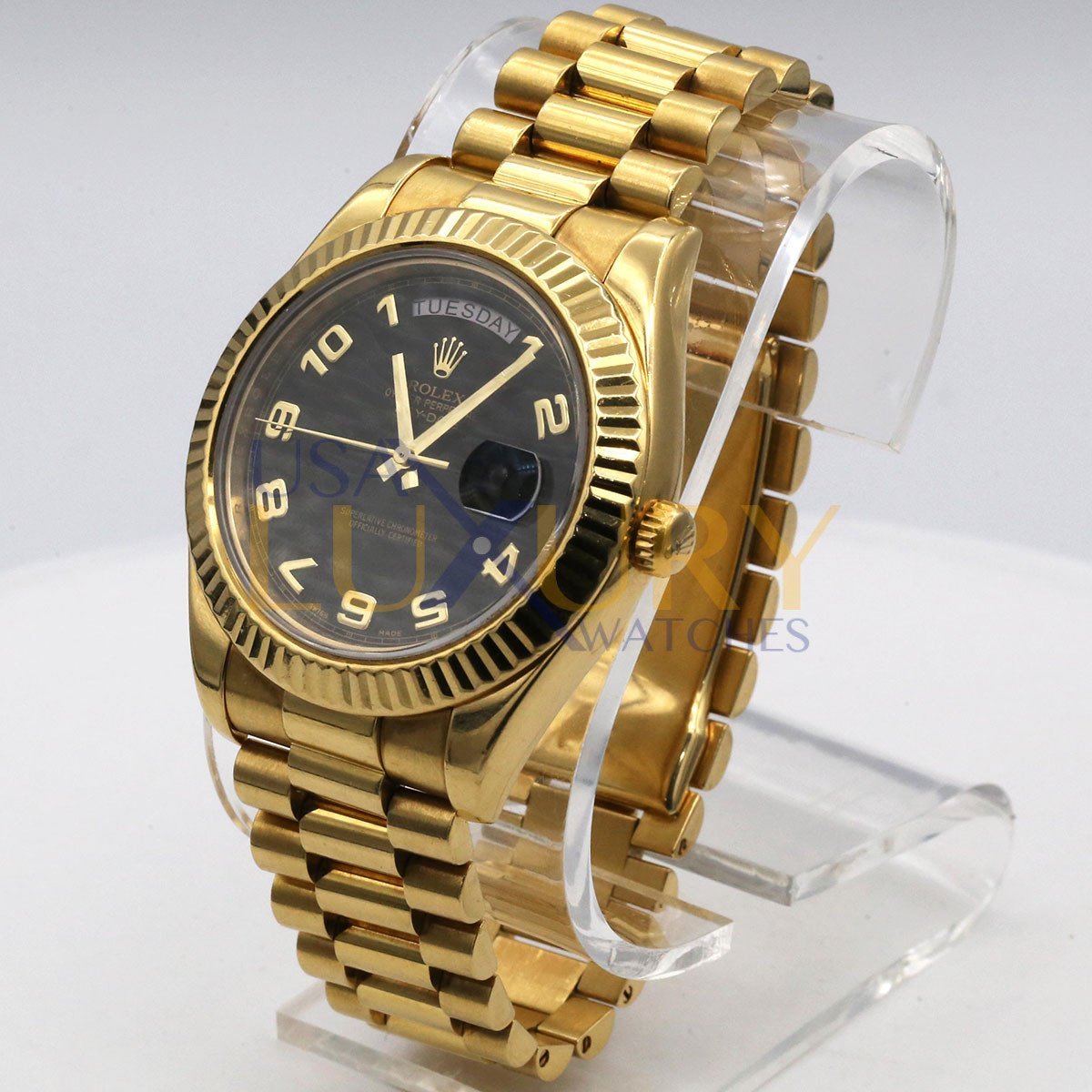 Rolex Day-Date II 218238 18K Yellow Gold Black Wave Arabic Dial 41mm Watch