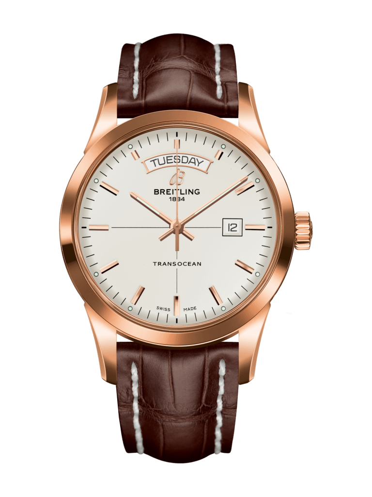 Breitling R45310121G1P1 Transocean Day & Date 43mm 18k Red Gold Mercury Silver Dial