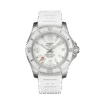 Unidirectional rotating Stainless Steel with a white top ring bezel. COSC-certified Breitling Caliber 17 automatic movement with 25 jewels, and an approximate power reserve of 38 hours.