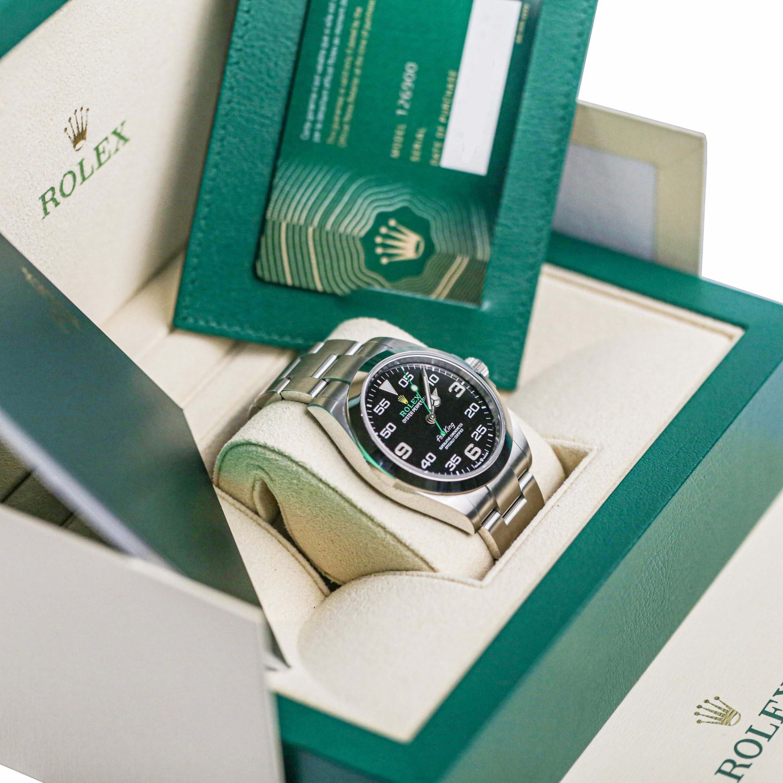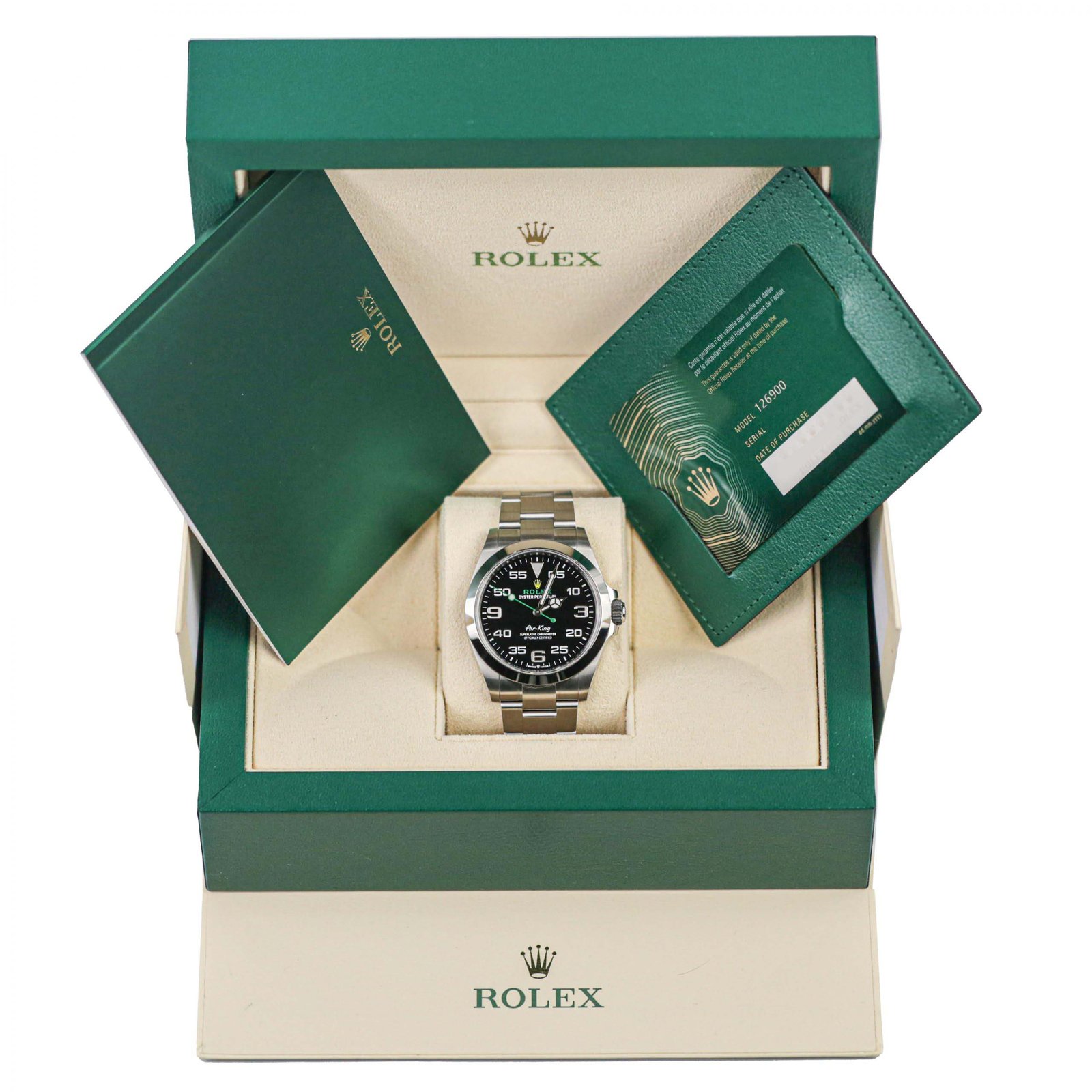 Unworn Rolex Air-King 126900 Black Dial Watch, Complete Set (Box and Papers)