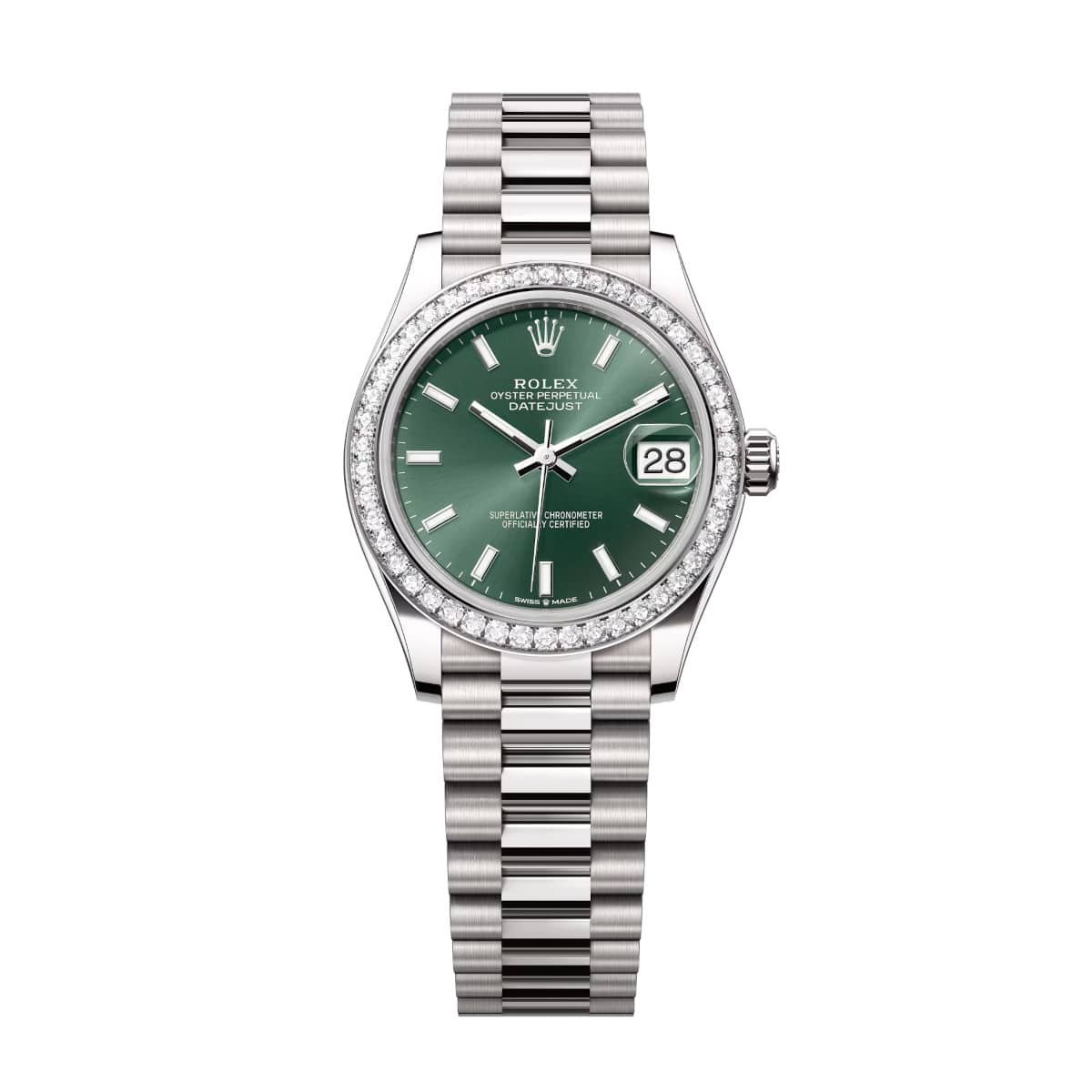 Rolex Datejust 278289RBR-0013 Pink 31mm Dial Set with Diamonds Bezel 18 kt White Gold President Bracelet Watch